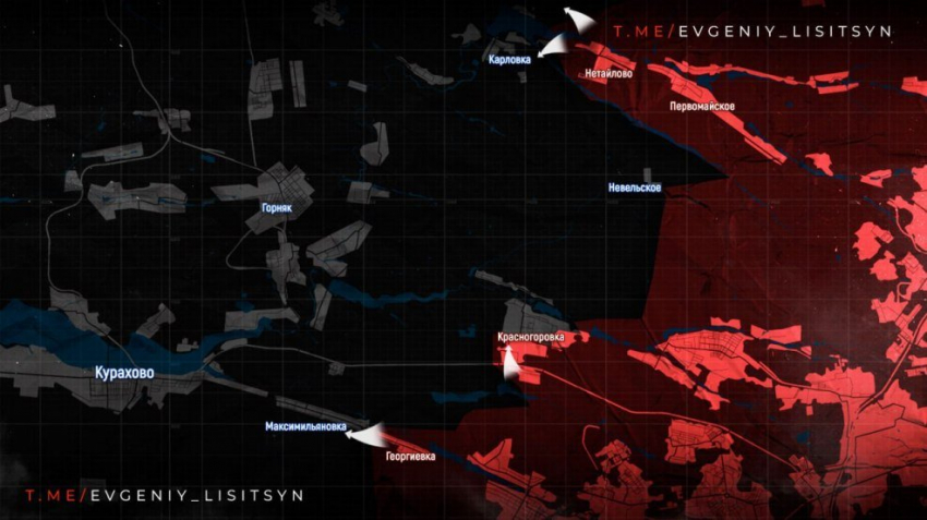На Донецком направлении армия России продвинулась на глубину от 500 м до 1,5 км по линии Владимировка - Константиновка. До трассы Константиновка-Угледар остается 2-3 км. Бои продолжаются в Красногоровке, где российские штурмовики выдавливают противника из частного сектора на западе города. Обстановка в районе Максимильяновки остается неопределенной.