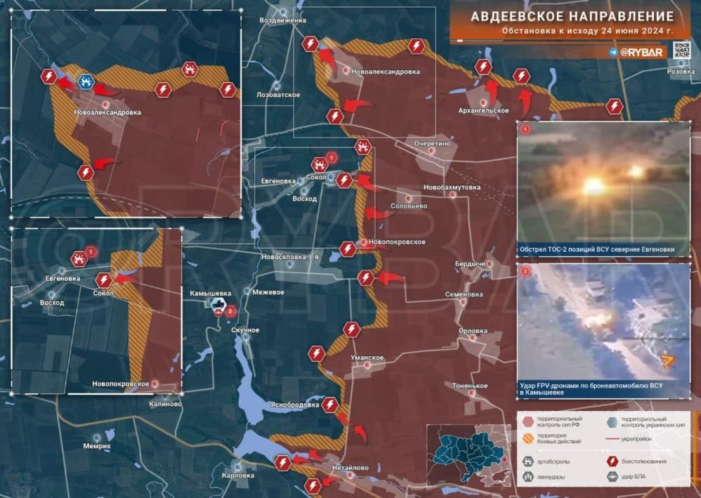 Сводки с различных направлений в зоне СВО, а также карты боевых действий на Украине на вторник, 25 июня 2024 года. В зоне военной спецоперации происходит множество событий, львиная доля которых связана с активным продвижением российских войск.