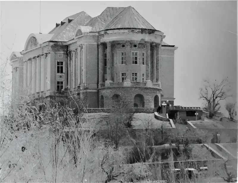 Подход к дворцу, где прорывалась группа Семенова, в правой части фото видна лестница