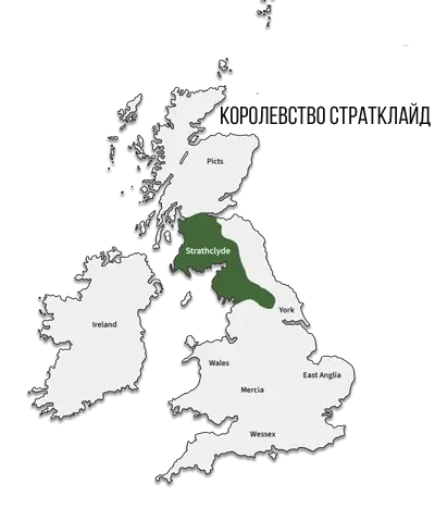 На заметку. Бриттское королевство Стратклайд (Strathclyde) было расположено в низинах современной Шотландии в традиционный артуровский период и изначально было занято племенем, известным как Дамнонии, существование которого было зафиксировано пришедшими на остров римлянами. Римский император Констанций Хлор (250–306) заключает договор с Дамнониями, чтобы остановить их нападения на римскую часть Британии, и уже последующие лидеры Дамноний имеют латинизированные имена, что предполагает определенное принятие романизации после принятия договора. За время своего существования Стратклайд столкнулся с многочисленными проблемами и конфликтами — ему пришлось бороться с вторжениями викингов с запада и влиянием нортумбрийцев с юга. Со временем королевство Стратклайд все больше и больше интегрировалось в Королевство Шотландия. И эта интеграция была не внезапной, а постепенным процессом, приведшим к тому, что к XI веку Стратклайд фактически перестал существовать как отдельное королевство и был включен в себя расширяющимся Королевством Шотландия.