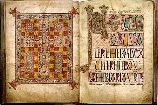 Евангелие из Линдисфарна (Lindisfarne Gospels). Иллюстрированная рукописная книга, содержащая тексты евангелий (четыре Евангелия на латинском языке) от Матфея, Марка, Луки и Иоанна. Книга создана в Линдисфарне в Нортумбрии примерно в конце VII — начале VIII столетия. Содержит множество миниатюр, выполненных в кельтско-англосаксонском стиле. Предполагается, что Евангелие из Линдисфарна — это работа монаха, ставшего позже епископом Линдисфарна по имени Эадфрит.