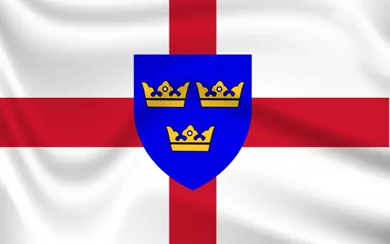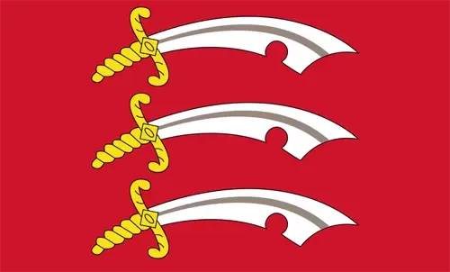 Устрашающий флаг Эссекса — три белых коротких саксонских меча с золотой рукояткой на красном поле — был гербом, приписанным древнему королевству восточных саксов, или Эссексу, католическим публицистом Ричардом Верстеганом, который в своей работе 1605 года «Восстановление упадочного интеллекта», напечатанной в Антверпене, утверждал, что «Эркенвин, король восточных саксов, носил в качестве своего герба три серебряных саксонских меча на красном поле».