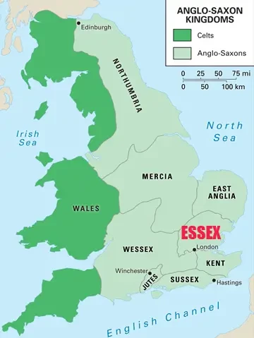 Королевство Эссекс выросло за счет поглощения им более мелких мелких варварских королевств, стихийно образовавшихся после вторжения в Британию англосаксов, и включения в себя саксонских племенных групп, проживавших на острове раньше. Границами Эссекса в более поздние времена были реки Стаур (впадает в Северное море) и Темза, но первоначальные пределы королевства совершенно неопределенны и до сих пор...