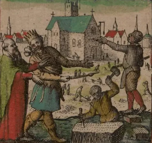 Король Эссекса Саеберт (годы правления 604–616). Изображение короля Саеберта из книги Джона Спида «Театр империи Великобритании», которая была опубликована в 1611/1612 годах.