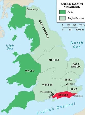 Границы средневекового королевства Сассекс примерно совпадают по площади с современными графствами Восточный Сассекс и Западный Сассекс.