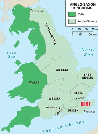 Королевство Кент было самым первым англосаксонским королевством, основанным около 475 года н.э., когда германский народ ютов, живший раньше на полуострове Ютландия, поселился на южном побережье Британии, после того как римские легионы покинули Британию. Королевство Кент, названное так по имени бриттского племени кантиев, в самый ранний период заселения Британии было самым сильным.