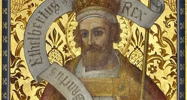 Король Кента Этельберт (около 552–616 гг.) женился на Берте (ок. 565–601 гг.), франкской христианской принцессе из Парижа (внучке правящего тогда короля Хлотаря I). Беда Достопочтенный в своих сочинениях сообщает, что король Этельберт был одним из бретвальдов*, «расширил границы своих владений до великой реки Хамбер*, которая разделяет южный и северный народы англичан».
