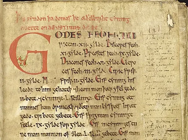И что самое интересное для историков — Этельберт смог письменно записать свой Кодекс законов в Кенте, и этот документ представляет собой не только первый записанный германский свод законов, но и самый ранний документ на местном языке, поскольку он был написан на староанглийском языке, а не на латыни!
