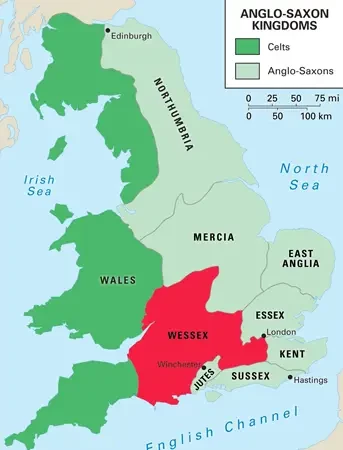 Королевство Уэссекс на карте Британии.