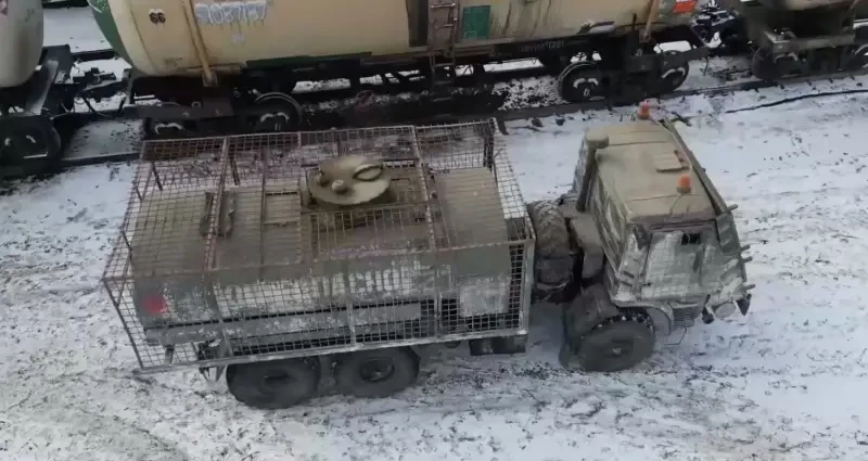 Первым откликом на далеко не новые угрозы для техники Службы горючего стало блиндирование автотопливозаправщиков. Известен сюжет Министерства обороны, в котором продемонстрировали работу тщательно защищённого бензовоза АЦ-7-4310. Топливная цистерна на 7000 литров горючего защищена решётчатыми экранами со всех сторон, и это кажется очень интересным решением. Несмотря на то, что топливные танкеры на колёсах мы традиционно именуем банзовозами, на самом деле в цистернах преимущественно солярка. Все интересующиеся бронетанковой техникой знают о хороших противокумулятивных свойствах этого вида топлива. В своё время даже проходили натурные испытания противокумулятивных экранов, заполненных дизельным топливом. И они оказались достаточно эффективными. Именно поэтому можно говорить об условной полезности противокумулятивных экранов вокруг цистерны топливозаправщика. При удачном стечении обстоятельств преждевременный подрыв боеприпаса действительно может уменьшить его поражающее действие. Повторимся, при очень удачном стечении обстоятельств. В остальном блиндирование, пожалуй, самого известного на СВО бензовоза вполне традиционное – стальные плиты защищают кабину с трёх сторон, оставляя открытой крышу.