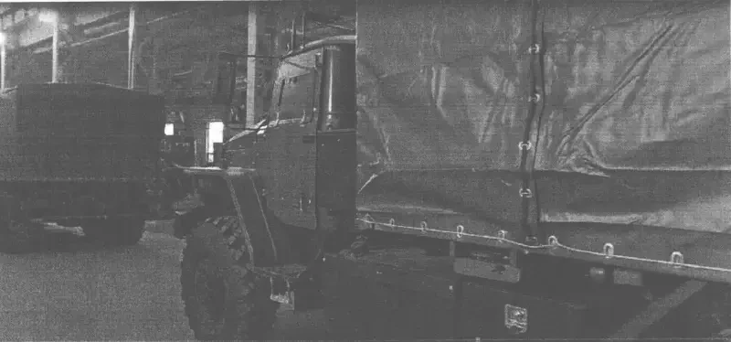 Не менее важным преимуществом бензовоза является тент, скрывающий цистерну от вражеских глаз и БПЛА. Из серийных машин это, похоже, первый бензовоз, мимикрирующий под менее жирную цель для дрона. Из примечательных особенностей изделия АТЗ-8-4320М можно усмотреть максимально смещённую к корме цистерну с топливом. Насосное оборудование теперь позади кабины. Такая компоновка призвана ещё больше удалить взрывоопасное топливо как от кабины с бойцами, так и горячего двигателя. Всё это повышает шансы экипажа вовремя покинуть воспламенившийся бензовоз. Отказались разработчики от противодроновых решёток на цистерне, заменив их на сплошные взводные экраны, расположенные с минимальным зазором. Есть надежда, что сама цистерна бронирована по минимальному уровню. Интересен стеллаж с 20-литровыми канистрами, размещённый сразу за кабиной. Доставка топлива на фронте не ограничивается только бензовозами – на переднюю линию подвозить бензин с соляркой могут даже на мотоциклах. И раздача канистр у бензовоза здесь как нельзя кстати.