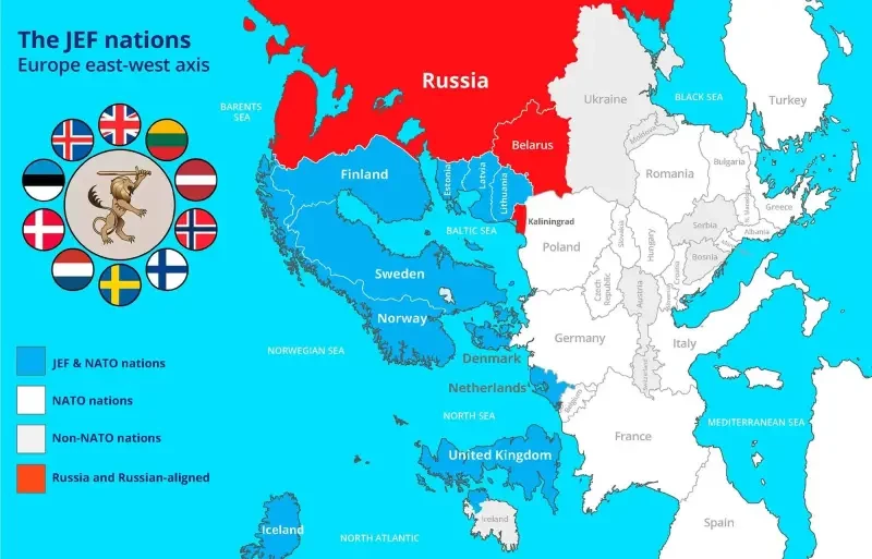 Если повернуть карту Европы по оси «восток-запад», то можно увидеть, что страны Балтии и Скандинавии находятся на границе с Россией, и что поддержка этих стран (наряду с Украиной) особенно выгодна Великобритании. У Великобритании по-прежнему самые мощные военно-морские силы среди стран-участниц JEF, которые рассчитывают на решительное лидерство Лондона в защите региона. Сокращение численности фрегатов Королевского военно-морского флота и потеря десантных возможностей LPD не внушают оптимизма в отношении этого партнёрства.