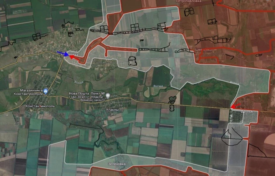Вместе с этим имеются тактические успехи в северо-западной части Дачное, ВС РФ ведут штурмовые действия на юго-восточной окраине упомянутого населенного пункта.