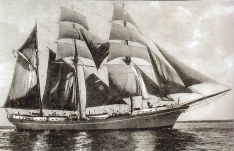 Будущий учебный парусник был построен в 1913 году на датской верфи как четырёхмачтовая шхуна «Мортен Йенсен» («Morten Jensen»). Первоначально использовалась датским судовладельцем для каботажных перевозок в Северном и Балтийском морях. В 1916 году была продана норвежцам, сменила двух судовладельцев и два названия.