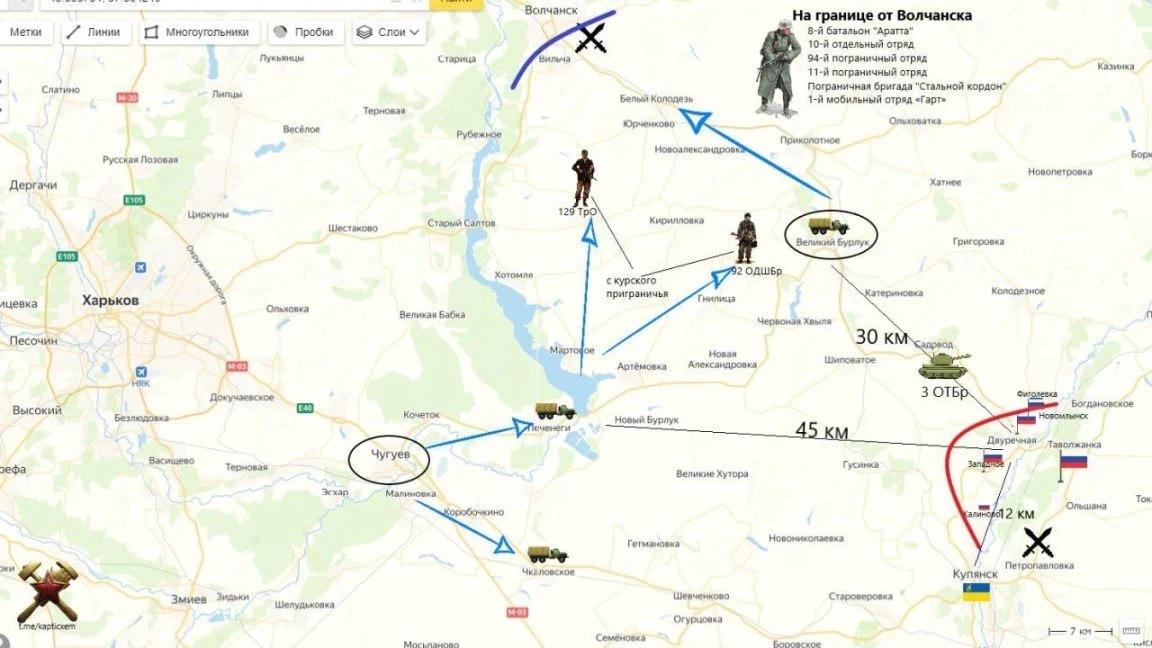В течение последнего суток украинские войска потеряли как минимум взвод, предпринимая попытки вернуть утраченные позиции в районе села Богуславка Харьковской области. Об этом сообщил военный эксперт Андрей Марочко в своём Telegram-канале.