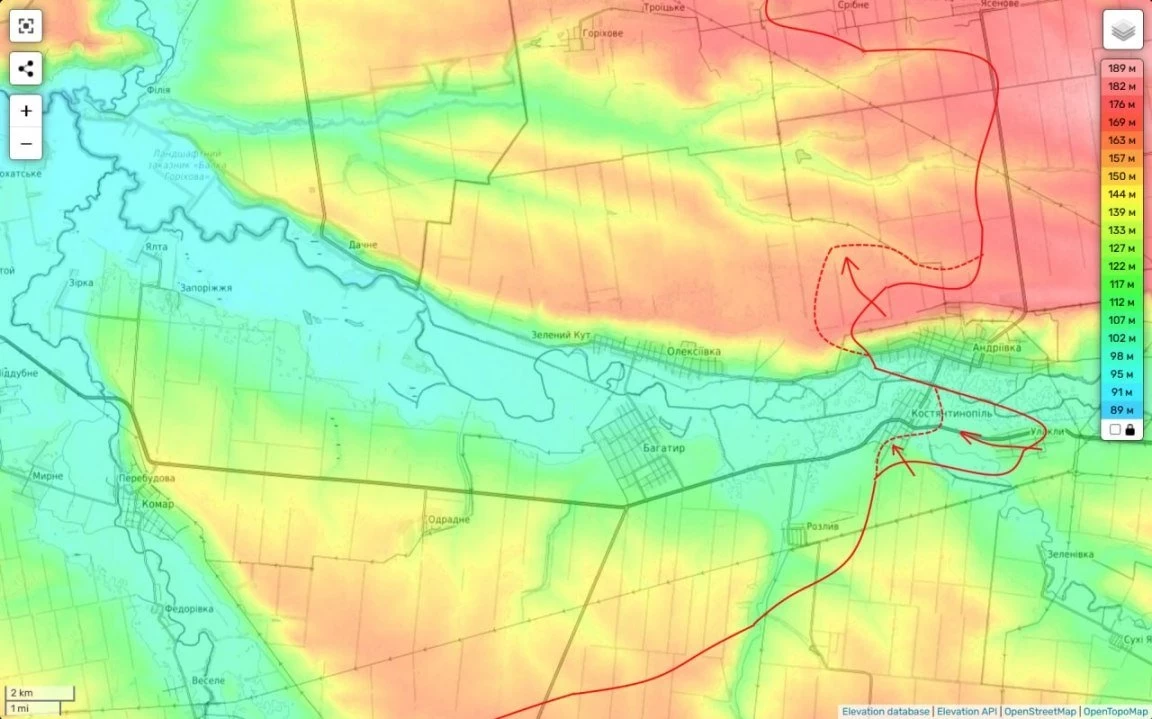 Одновременно российские силы практически завершили зачистку села Андреевка, расположенного севернее Константинополя. В этом районе ликвидируются последние очаги сопротивления, в которых участвуют 421-й и 214-й батальоны ВСУ, а также 79-я отдельная десантно-штурмовая и 46-я отдельная аэромобильная бригады.