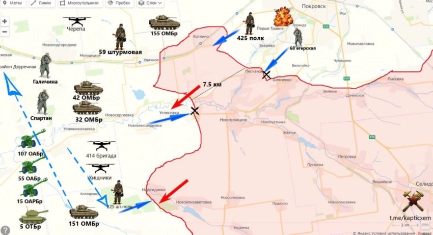 На Красноармейском направлении после освобождения Песчаного и выбивания врага из ключевого оборонительного узла в районе промзоны, бойцы Вооружённых сил Российской Федерации (ВС РФ) продолжают движение на северо-восток.