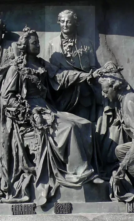 А. А. Безбородко на Памятнике «1000-летие России» – гордо стоит между Екатериной II и Потемкиным