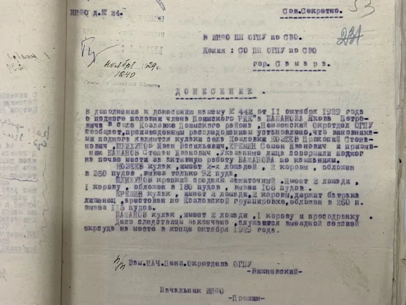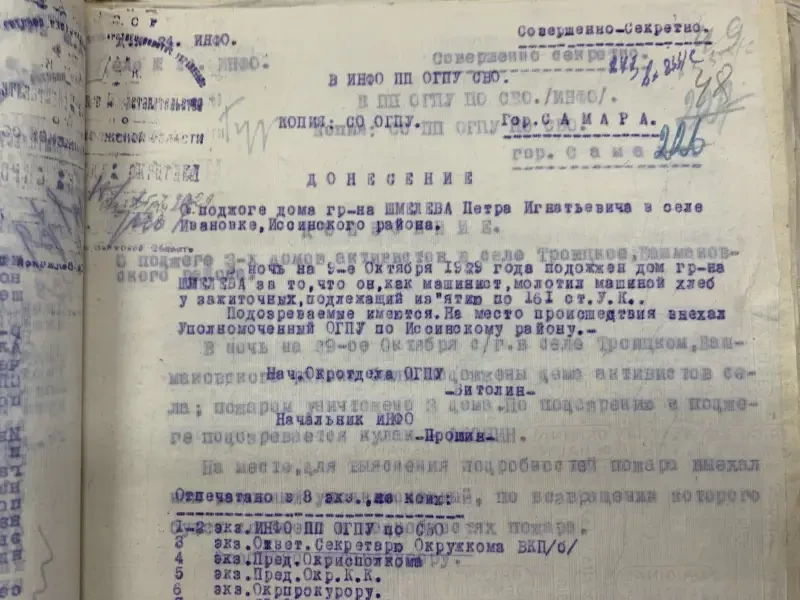 Документы истории. Сегодня мы продолжаем знакомиться с документами пензенского партийного архива, находящимися в папке с донесениями Пензенского окротдела ОГПУ с сентября 1929 и по март 1930 года. То есть это время самого начала коллективизации советской деревни. Из предыдущего материала, думается, каждому было понятно, с какими огромными трудностями столкнулась советская власть на пути установления колхозного строя в деревне, начиная от нехватки кадров и до нехватки материальной базы, нередко имеющейся, но почему-то ржавевшей под снегом.