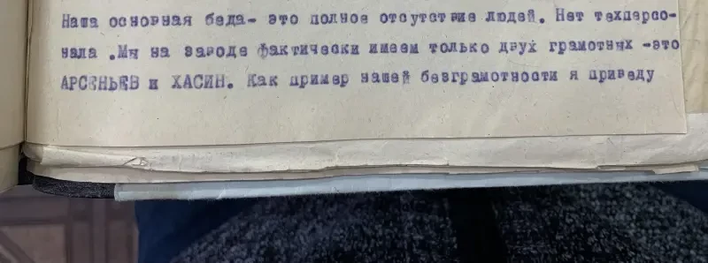 Ну и опять же всё та же проблема: нет людей. То есть люди из деревни в город приходили, на заводы рабочими устраивались, но… проходили годы, прежде чем им можно было поручить какую-то сложную работу. Вы только подумайте, на дворе 1930 год, но на весь завод в наличии всего двое грамотных, которые известны по именам!
