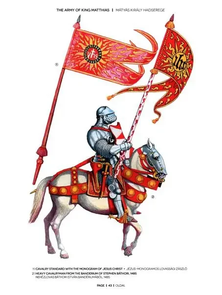 Если же пехотный прорыв не получался, в бой шла тяжёлая кавалерия Корвина. Рыцари поступали на службу со своим вооружением, конями и доспехами. Перед атакой они строились квадратом. Длина рыцарского копья времён короля Матьяша была около 4 метров, кроме того, рыцарь обычно имел два меча: один длиной около метра — на боку, и «бастард» длиной 1,3-1,4 метра — у седла. Часто тяжёлая кавалерия Корвина использовала палицы и «боевые цепы».