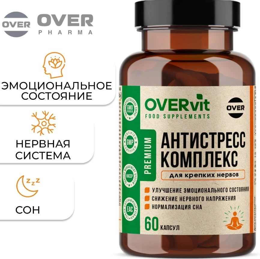 Антистресс комплекс от бренда OVER — это натуральная формула на основе магния, витаминов B1 и B6, а также проверенных растительных экстрактов: валерианы, зверобоя, пустырника и мелиссы. Всё это не просто слова на банке — препарат реально работает как мягкий успокоитель, улучшает сон, снижает тревожность и помогает восстановить ресурсы организма после эмоционального и умственного перегруза. Отличное решение для тех, кто хочет держать себя в руках — без срывов и фармы.