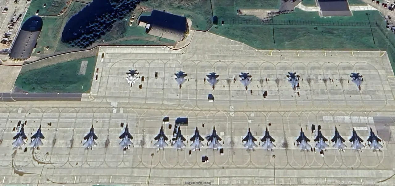 Спутниковый снимок Google Earth: американские истребители-бомбардировщики F-15E на британской авиабазе Лейкенхит