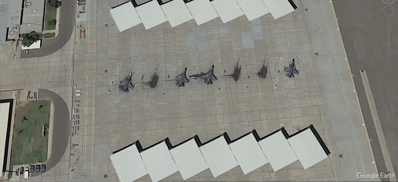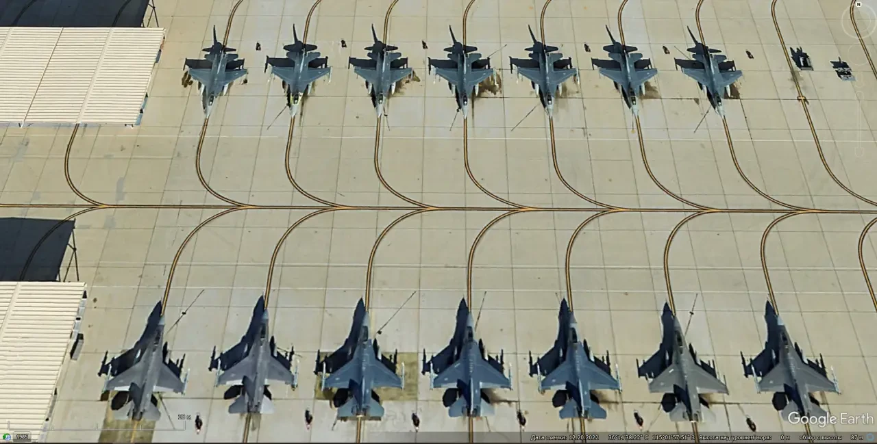 Спутниковый снимок Google Earth: истребители F-16C на выделенной территории Международного аэропорта Тусон