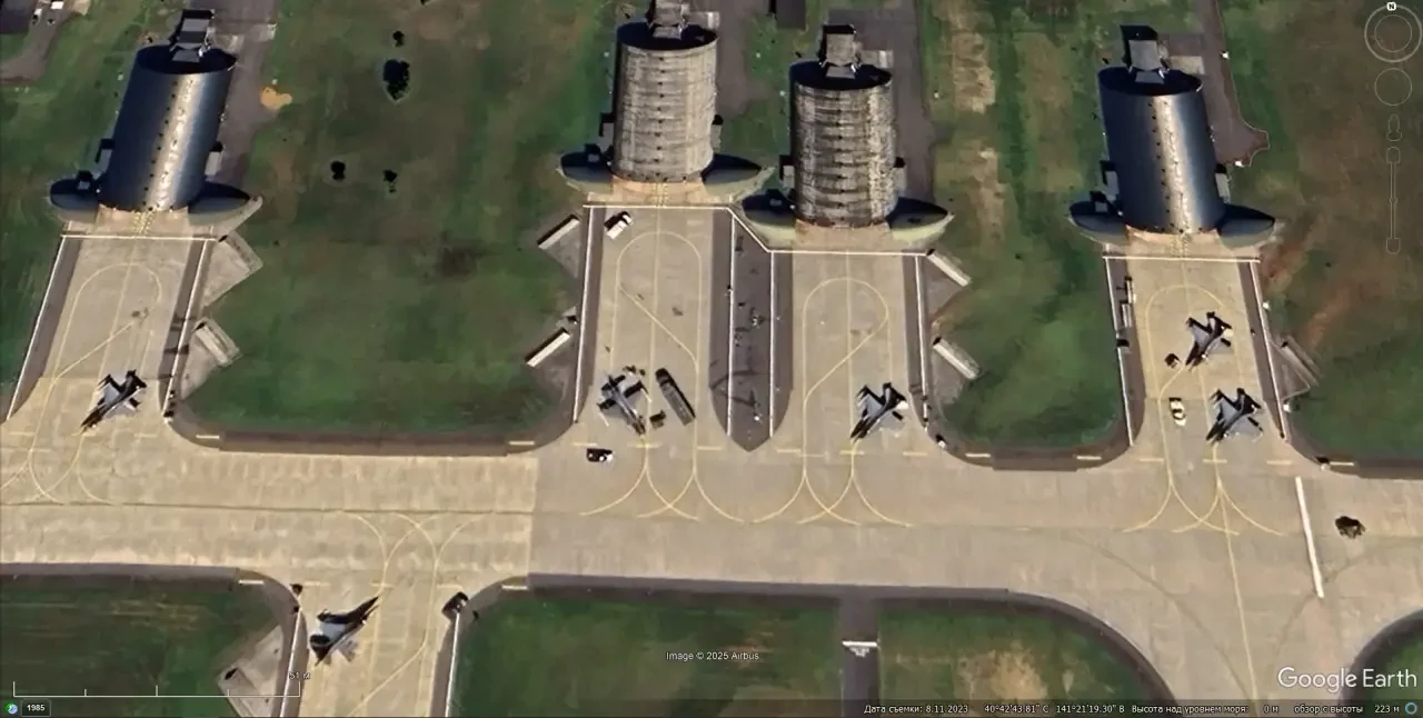 Спутниковый снимок Google Earth: истребители F-16C/D на авиабазе Мисава