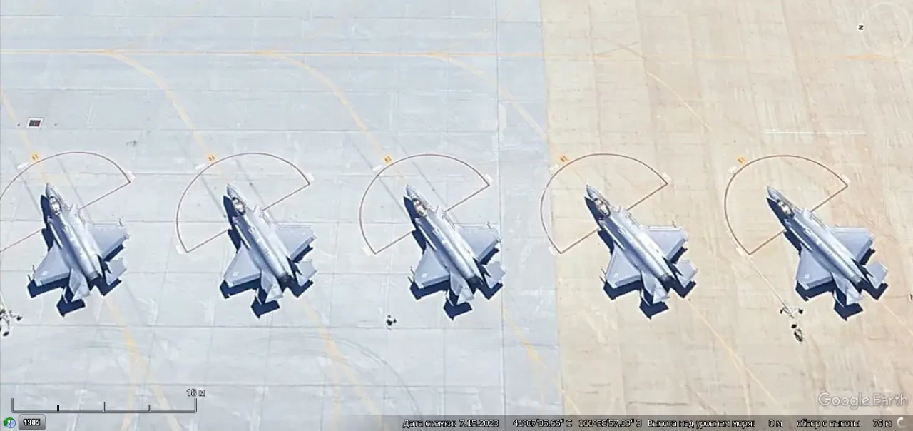 Спутниковый снимок Google Earth: истребители F-35A на авиабазе Хилл