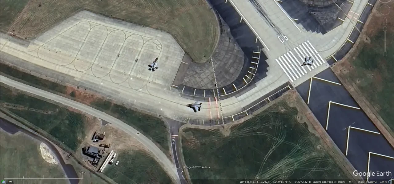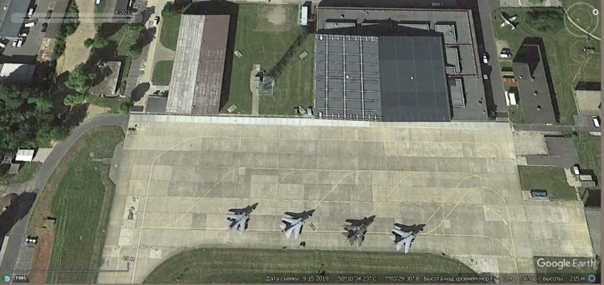 Спутниковый снимок Google Earth: истребитель F-16C на авиабазе Шпангдалем