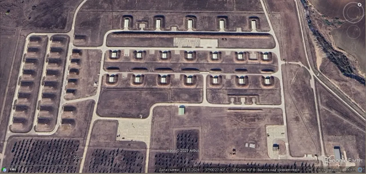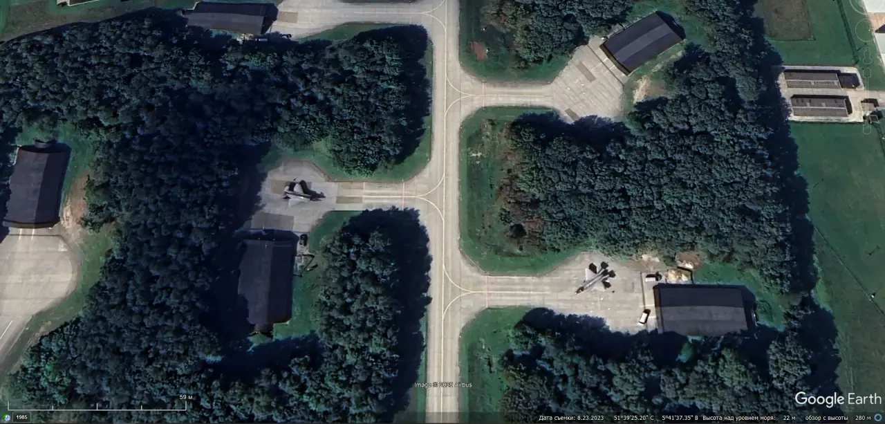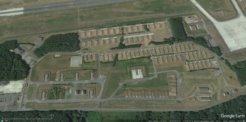 Спутниковый снимок Google Earth: комбинированные укрытия на авиабазе Бюхель
