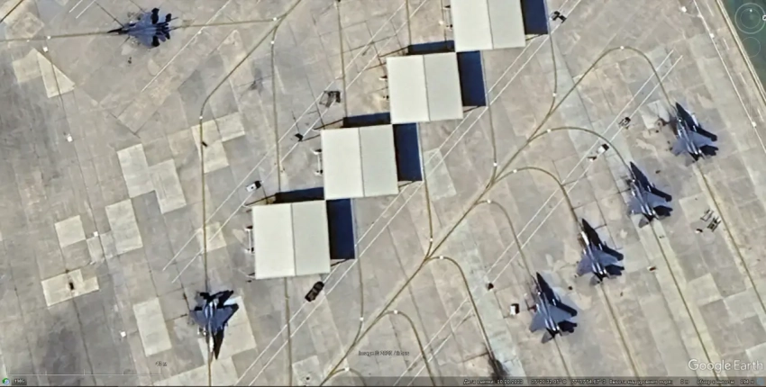 Спутниковый снимок Google Earth: истребители бомбардировщики F-15E на авиабазе Маунтин-Хоум