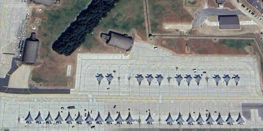 Спутниковый снимок Google Earth: истребители бомбардировщики F-15E на авиабазе Сеймур Джонсон
