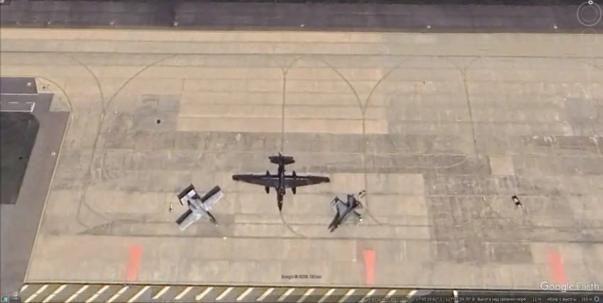 Спутниковый снимок Google Earth: истребитель F-16C, штурмовик А-10С и высотный разведчик U-2S на авиабазе Осан