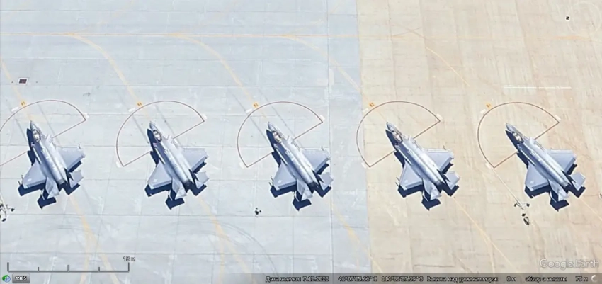 Спутниковый снимок Google Earth: истребители F-35A на авиабазе Волкель
