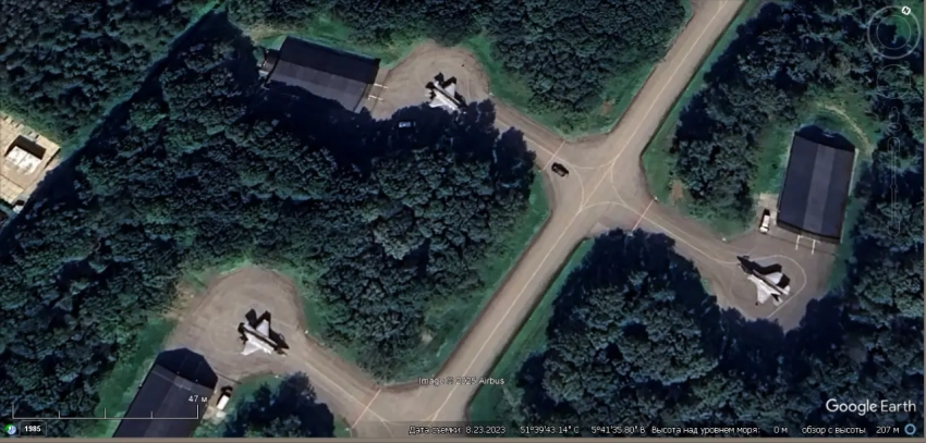 Спутниковый снимок Google Earth: самолёты Tornado на авиабазе Бюхель