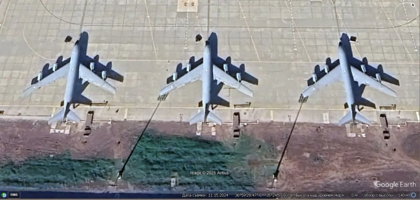 Спутниковый снимок Google Earth: самолёты-заправщики KC-135R на авиабазе Инджирлик
