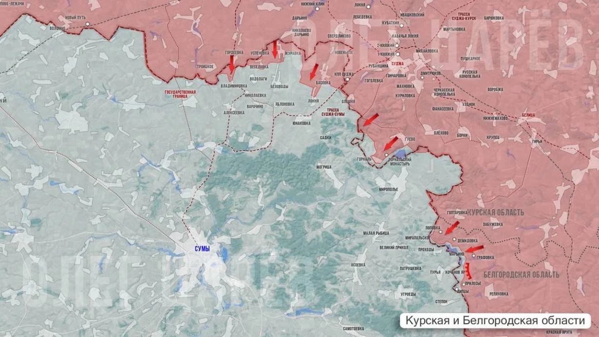 Боевые действия из зон вторжения ВСУ окончательно переходят в приграничье Сумской области Украины, хотя противник и не оставляет попыток забросить отдельные группы на территорию России.