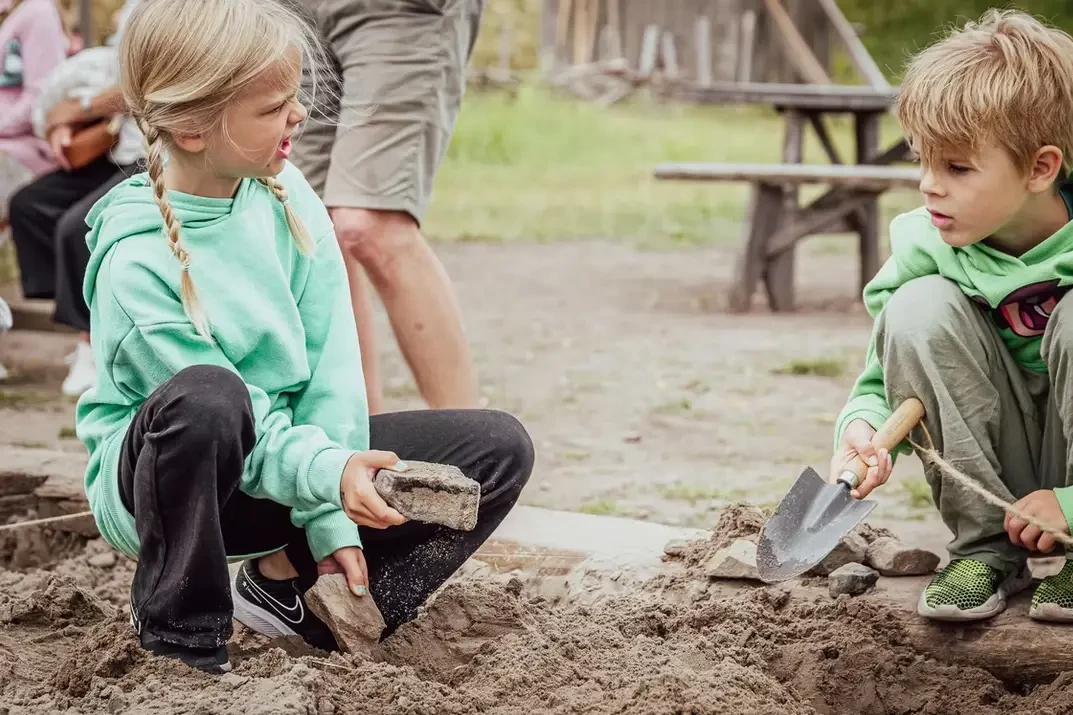 Юные археологи за работой в… песке. Нужно что-то найти, тогда получишь приз!