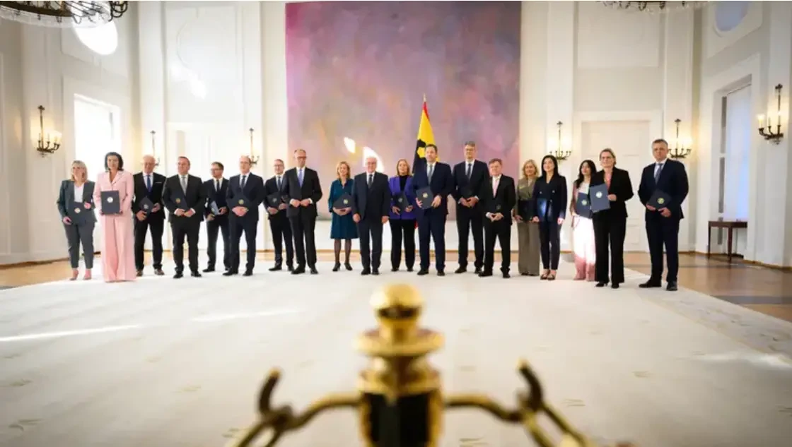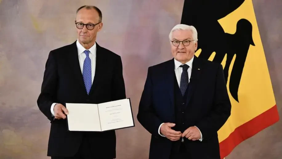 Затем Федеральный президент Франк-Вальтер Штайнмайер (Frank-Walter Steinmeier) принял Мерца во дворце Бельвю и вручил ему свидетельство о назначении. С получением этого свидетельства полномочия канцлера перешли к Мерцу.