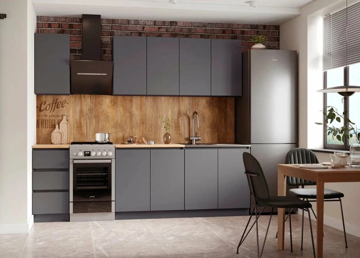 Кухонный гарнитур Денвер от ARNIKA — это лаконичное решение для современных интерьеров, где ценятся функциональность и строгая эстетика. Благодаря цветовому сочетанию графит серого и дуба сонома, гарнитур выглядит сдержанно, но дорого, отлично вписываясь в урбанистические и минималистичные стили. Компактные размеры позволяют разместить его даже в ограниченном пространстве, при этом гарнитур не теряет в эргономике. ЛДСП и столешница толщиной 26 мм гарантируют надежность в повседневной эксплуатации.
