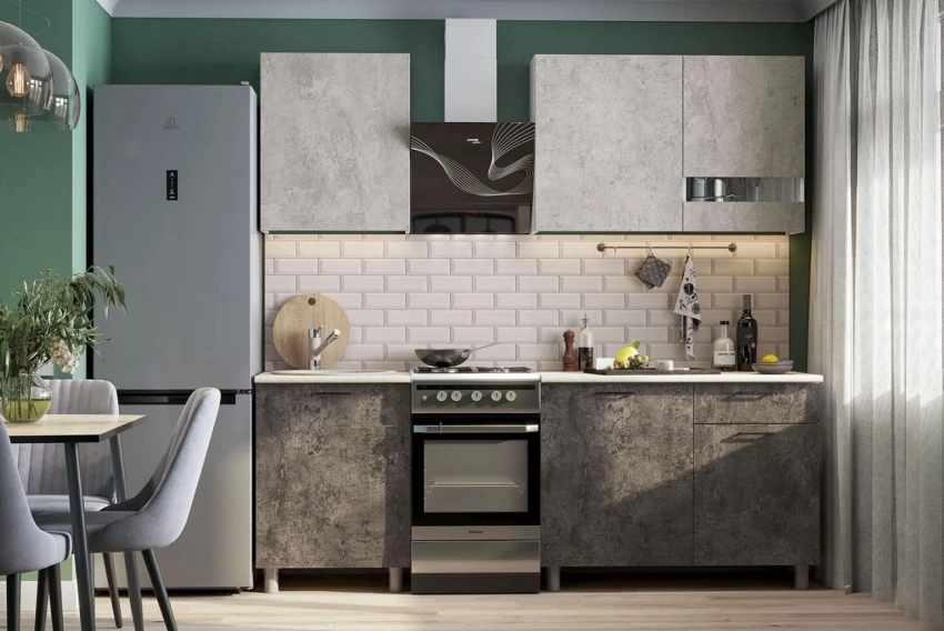 Кухонный гарнитур Hoff в стиле минимализм с цветовой палитрой от светлого до тёмного цемента — практичный выбор для современных интерьеров. Комплект из навесных шкафов и рабочих столов с удобными габаритами 170×214,2×60 см гармонично впишется в просторную кухню. Материал ЛДСП с постформингом на столешнице обеспечивает долговечность и простоту ухода. При выборе важно понимать, как подобрать цвет мебели для кухни, чтобы оттенки цемента создали стильный и сбалансированный образ без излишней мрачности.