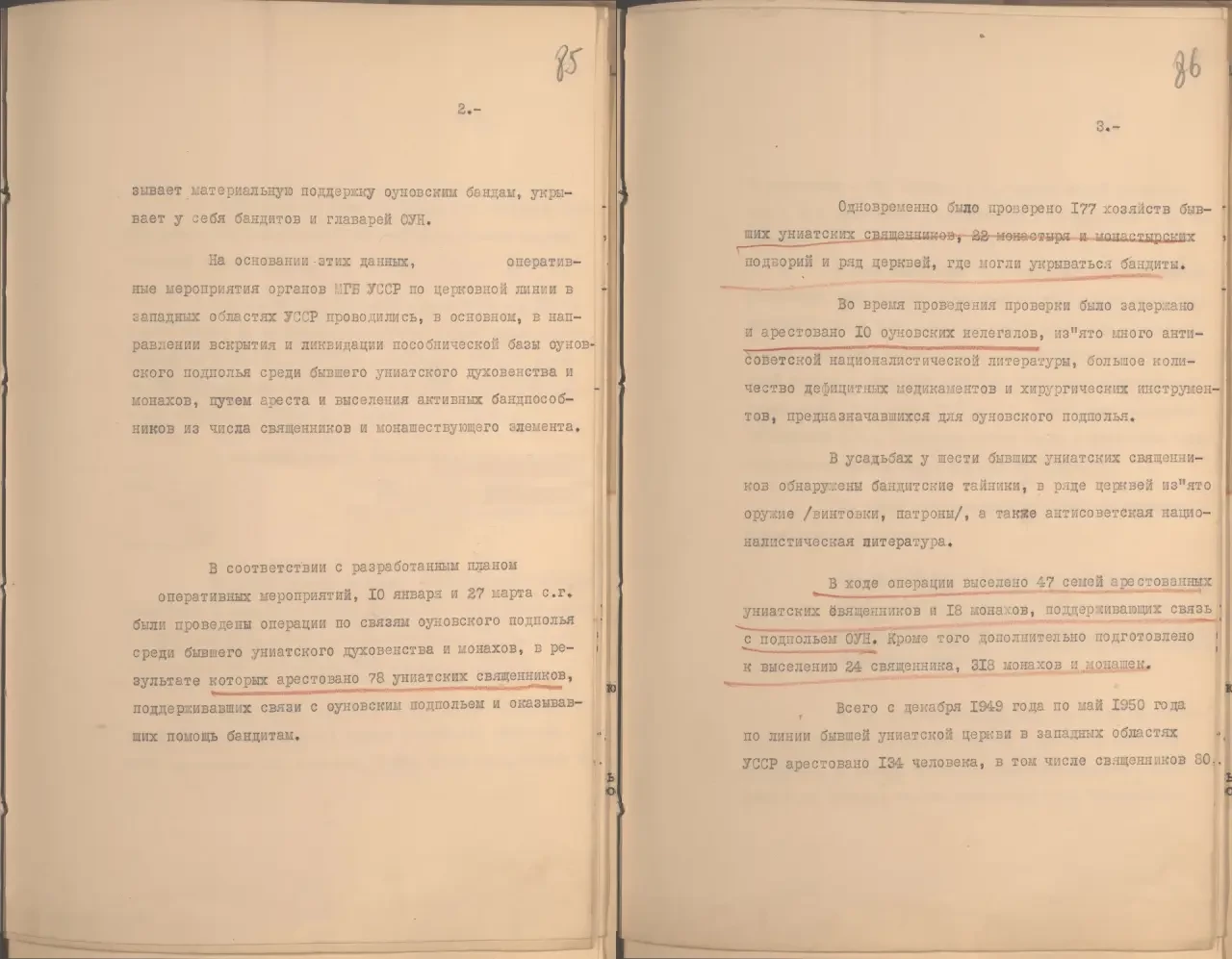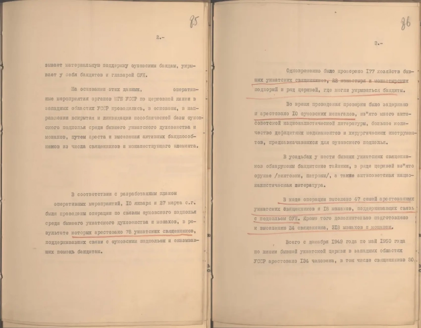 «В процессе оперативной работы по бывшему униатскому духовенству в западных областях Украины в МГБ (Министерство государственной безопасности. — Автор) УССР поступали данные, свидетельствовавшие о том, что значительная часть духовенства и монашествующего элемента бывшей греко-католической (униатской) церкви поддерживает связь с подпольем ОУН, оказывает материальную поддержку оуновским бандам, укрывает у себя бандитов и главарей ОУН».