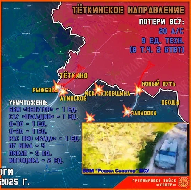 Социальные сети каждый день наполняют десятки некрологов и объявлений о пропавших без вести ВСУшниках на Тёткинском и Глушковском направлениях, однако противник не отказывается от планов вклинения в Курскую область на данном участке фронта. За сутки Северяне отразили две попытки прорыва врага на нашу территорию. Пересечения госграницы не допущено.