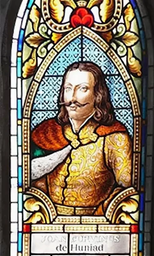 Портрет Яноша Хуньяди на витраже замка Хунедоара