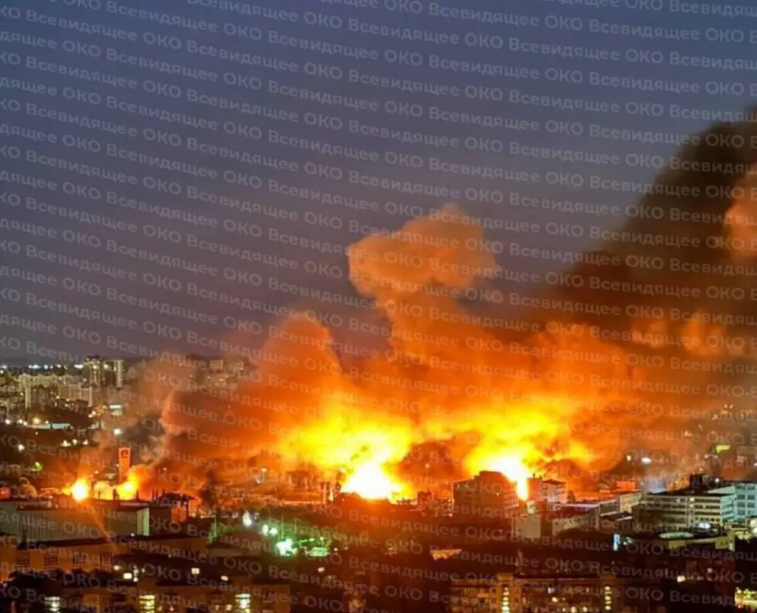 При этом в городе сильные задымления. В том числе от столба дыма, который поднимается над объектом военной промышленности, где также поражено хранилище ГСМ.