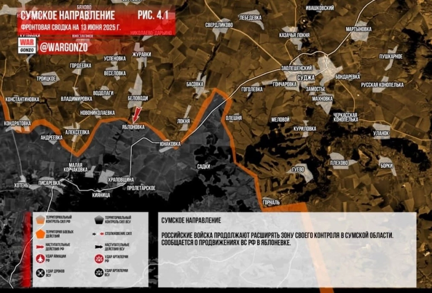 Бойцы ВС России ведут ожесточённые бои в Юнаковске на Сумском направлении: свежие данные на 13.06.2025