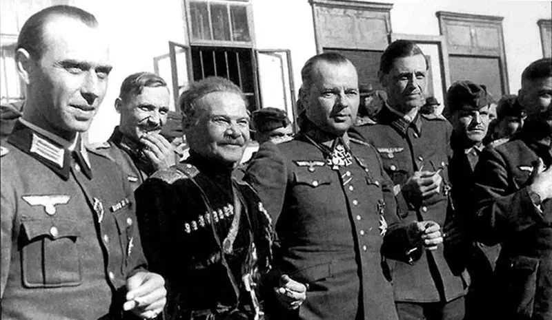 Была сформирована военная организация «Казачий стан». И командиры казачьих полков вермахта носили «исконно русские» имена и фамилии: Филипп фон Безелагер, Иоахим фон Юнгшульц, Эверт фон Рентельн и так далее. Летом 1942 года на стороне немцев уже воевали казачьи полки «Платов» (17-я армия), «Юнгшульц» (1-я танковая группа), 1-й лейб-гвардии Атаманский, 3-й Донской, 4-й и 5-й Кубанские, 6-й и 7-й Сводно-казачьи. К марту 1943 года в составе вермахта насчитывалось 20 казачьих кавалерийских полков общей численностью 25 тысяч человек.