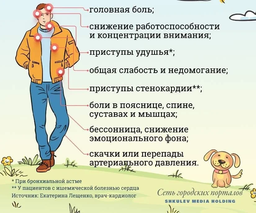 Основные симптомы метеозависимости (инфографика)